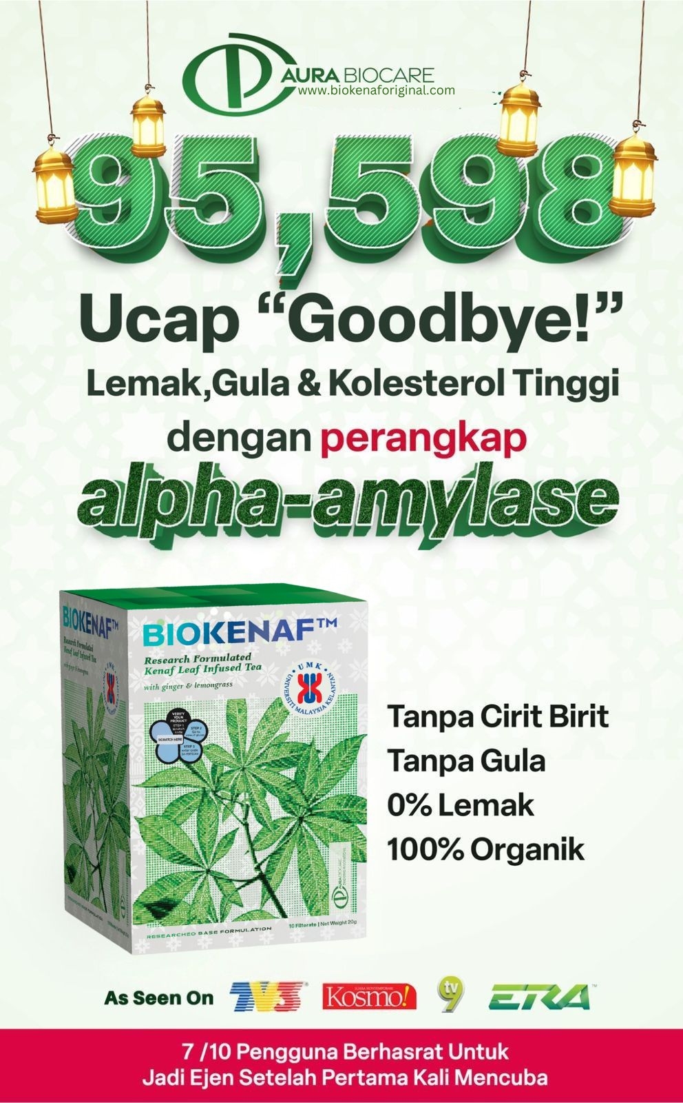 Biokenaf® diformulasi untuk target halang alpha-amylase dari memecahkan karbohidrat kepada gula & hentikan pembentukan lemak & triglycerides di hati.