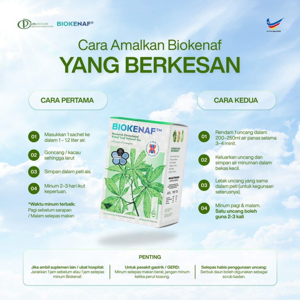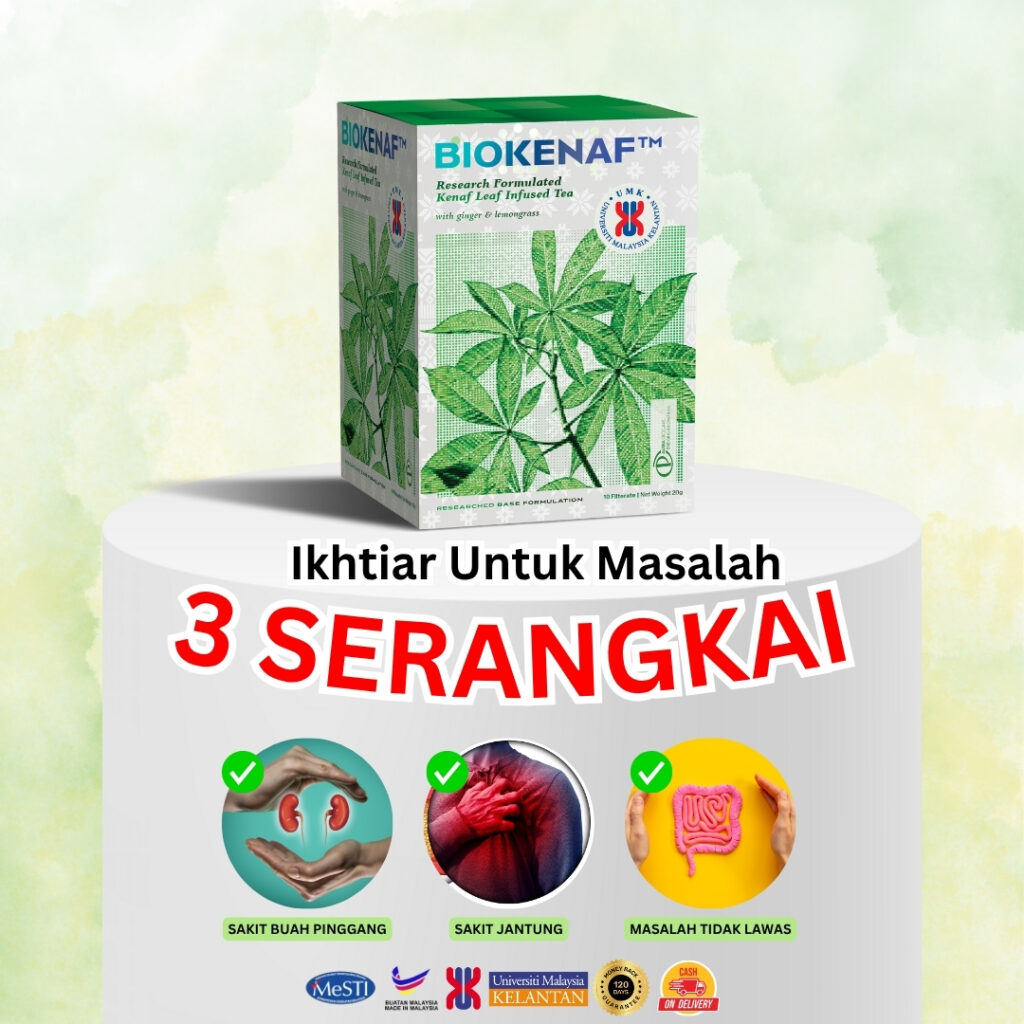 Biokenaf® diformulasi untuk bantu rawat masalah diatas. Sekiranya ada gastrik, betulkan masa makan terlebih dahulu sebelum amalkan teh herba Biokenaf®